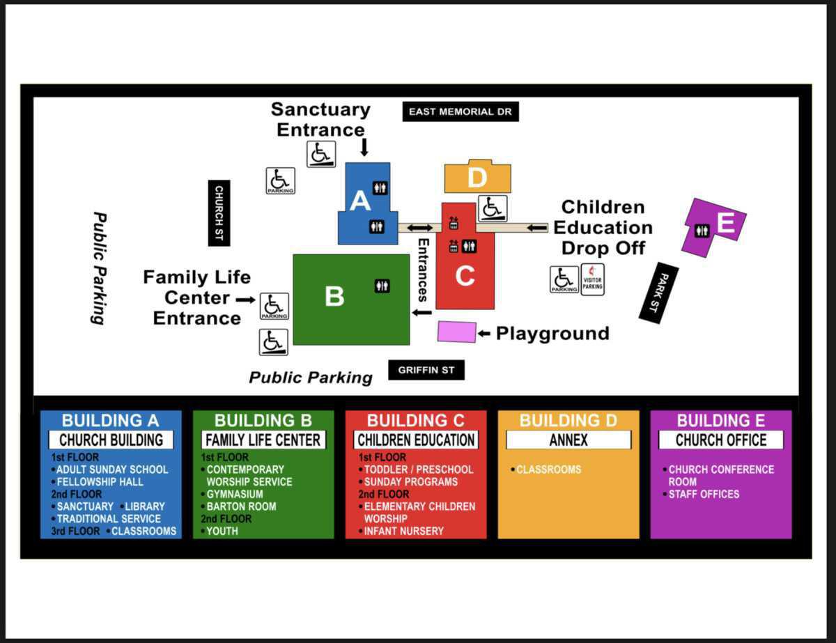 We are located at 141 East Memorial Drive in Downtown Dallas, GA. Our office hours are Monday-Thursday from 9:00 a.m. – 3:00 p.m. and closed on Friday. We’d love to show you around, or visit us in the church office and let us introduce ourselves to you. We can’t wait to meet you