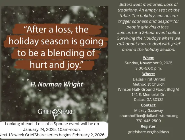 There is no charge for the event, but donations will be accepted.Register Here:http://www.griefshare.org/holidays