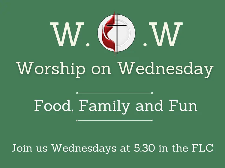 Join us for WOW Dinner!Enjoy a special time for children, youth, and adults starting at 5:30 p.m. in the FLC.Upcoming Menus:Nov. 5: Burgers (Team 3: Randle/Peggs)Nov. 12: Chicken/Sides (Team 5: Mooney/Childers)Nov. 19: Vegetable Beef Soup & Grilled Cheese, Nuggets, Salad (Team 4: Randle/Benson)Dec.